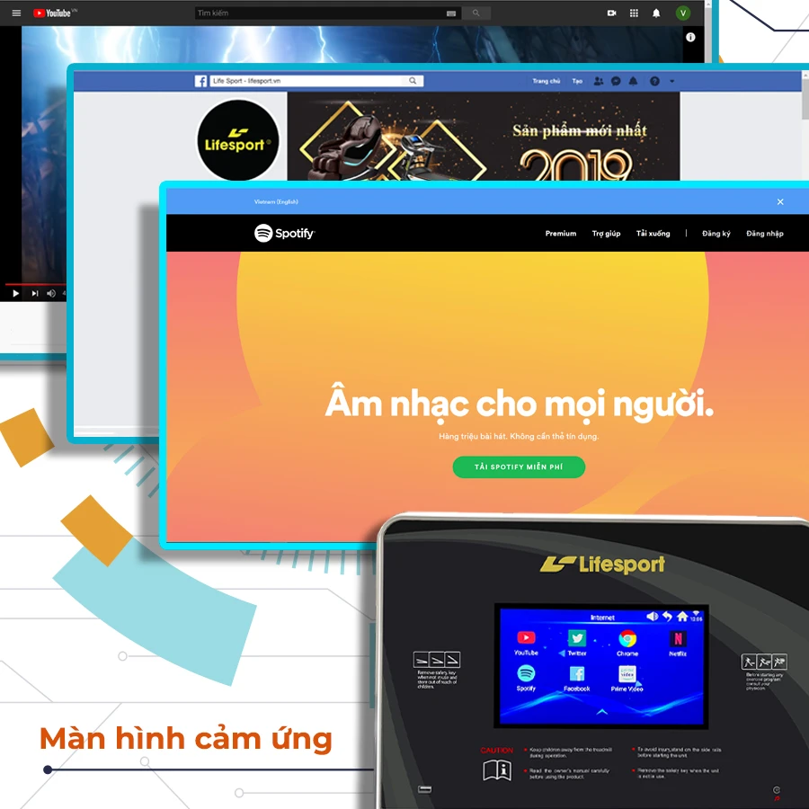 Máy chạy bộ Lifesport LS-9 sử dụng công nghệ màn hình cảm ứng đầu tiên